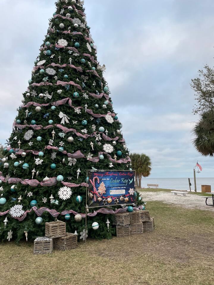 Cedar Key Florida condo with view of park and beach. We are pet friendly! Welcome to the island ! You will have all the comforts of home including 2 burner stove, refrigerator, microwave and air fryer/toaster oven. The unit balcony is overlooking the park and golf of Mexico.. Seafood restaurants serve amazing fresh local seafood. Enjoy a fishing trip, go dolphin watching on sunset cruise, enjoy shopping and art shows. Take a short drive to Crystal River and swim with manatees